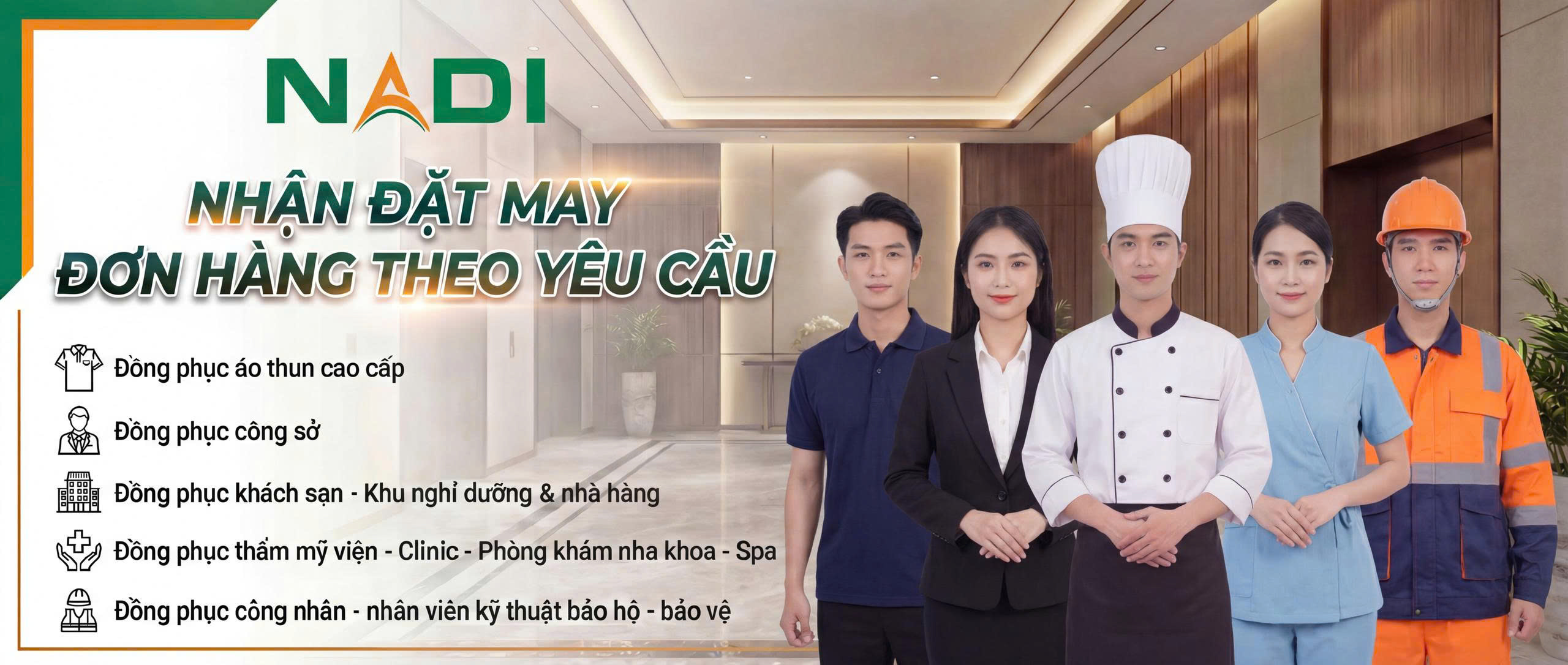 NaDi là xưởng may đồng phục chuyên thiết kế và sản xuất trực tiếp tại TP.HCM, không qua trung gian. Chúng tôi cung cấp giải pháp may đo trọn gói cho các dòng sản phẩm đồng phục công sở, spa, nhà hàng – khách sạn, áo thun sự kiện và thời trang thương hiệu. Khác với các xưởng gia công, Nadi sở hữu đội ngũ thiết kế, thợ may và quy trình sản xuất A–Z tại xưởng riêng.