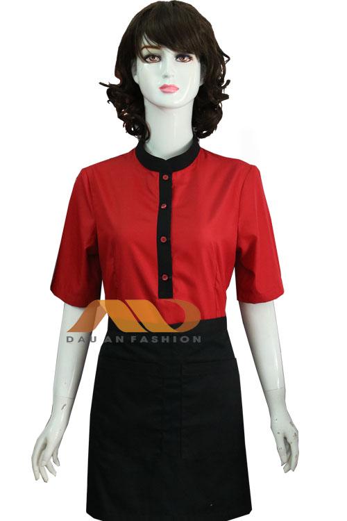 Thông tin chi tiết về sản phẩm Đồng phục nữ nhà hàng màu đỏ viền đen HS0097
